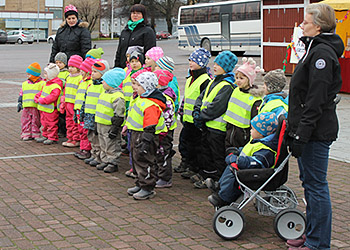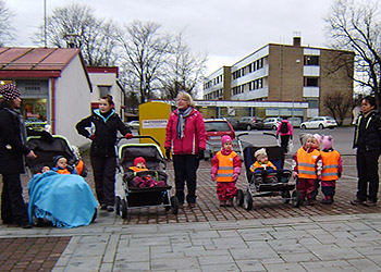 Laulavia päiväkotilapsia ja -tätejä.